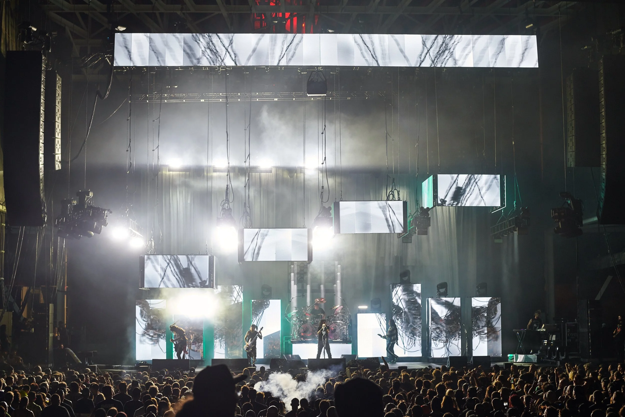 Korn launched a US tour following the release of their highly anticipated studio album THE NOTHING. The screen setup was built around modular carts that were mirrored cubes. Within the mirrors housed LED, but were only visible when the screens were displaying an image! In order to fully maximize the potential with this setup, I created a rig in 3D that would output what was happening in 3D space to the pixelmap supplied by the lighting director. This allowed us to fill the cubes with objects, cast light and reflections from one to another, and run particles/simulations across the surfaces! This helped to create an immersive augmented reality experience for the production.